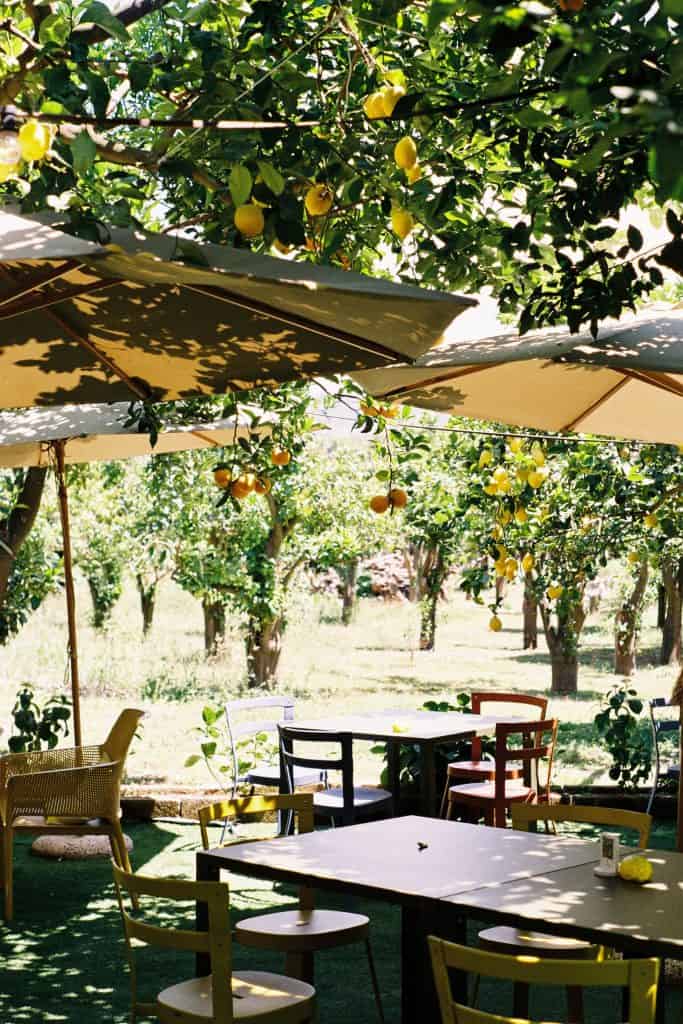 Set among the fruit trees, the restaurant is the perfect place to enjoy Italian cuisine, featuring lemons. The menu varies according to the availability of seasonal produce, and each dish is made using local products grown in the gardens.